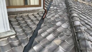 こちらは三豊市山本町内の屋根修繕依頼現場です 訪問時には上屋根の軒先瓦が落下しそうになった状態 屋根下地である垂木も折れそうでした こ...