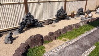 こちらは坂出市内の外部改修現場です 庭先では綺麗に整列した古鬼瓦がお出迎え デザイン性が高い骨董品にもなり得る鬼瓦は今となっては大変貴重...