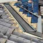 改質アスファルトルーフィング貼りと谷板を設置