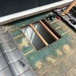 下葺材(改質アスファルトルーフィング)を貼りステンレス谷設置