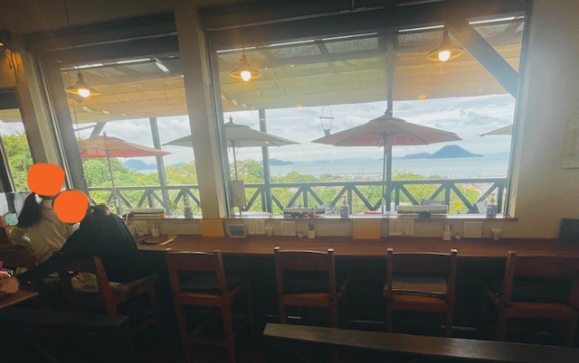 移動の合間に瀬戸内海が正面に見えるカフェにて