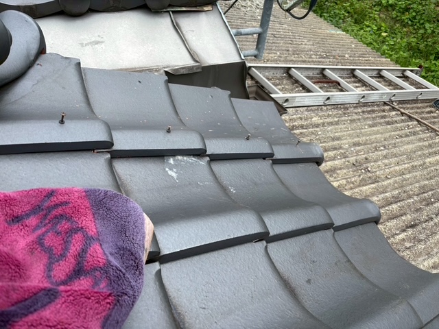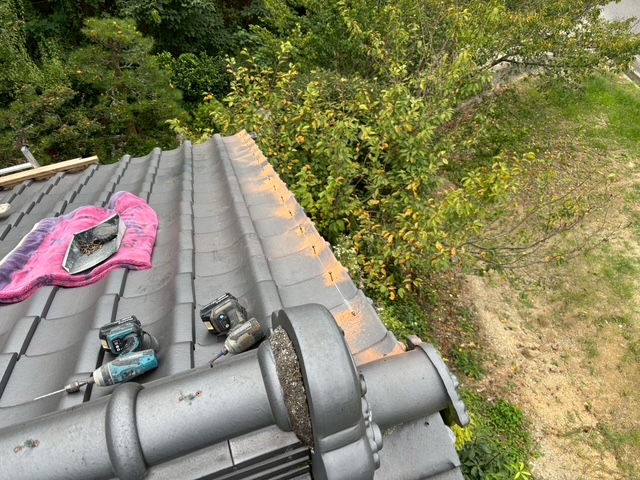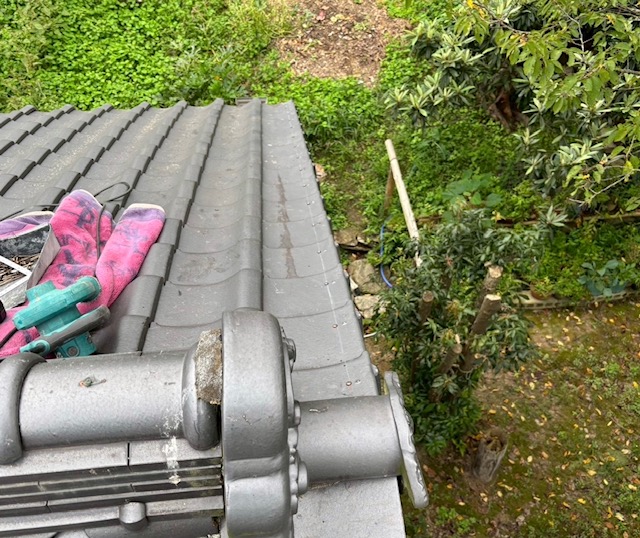 袖瓦が強風であおられ少々ズレ気味でして…