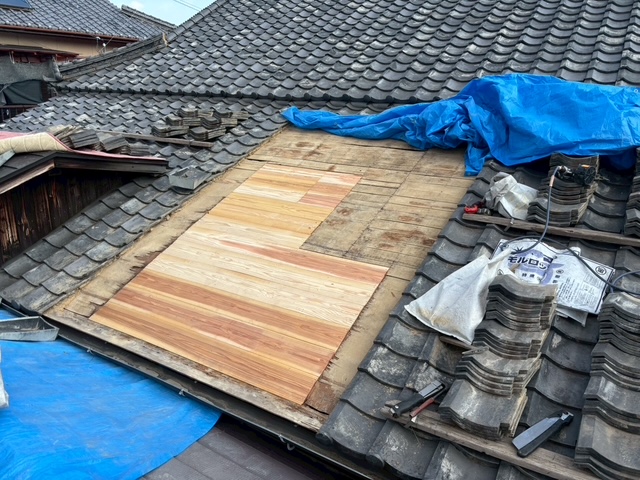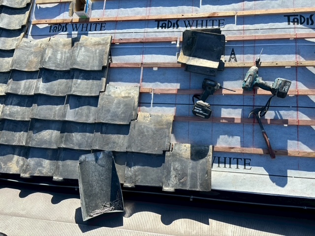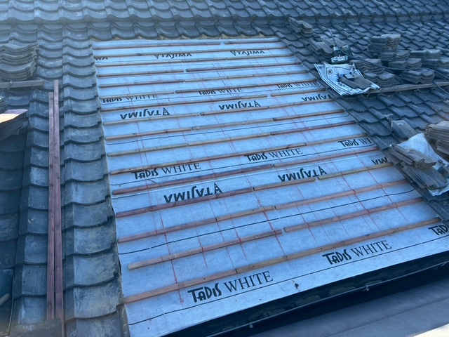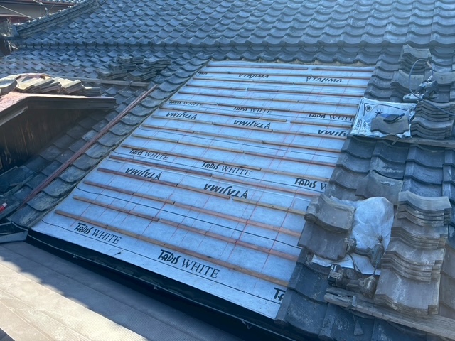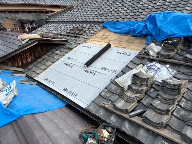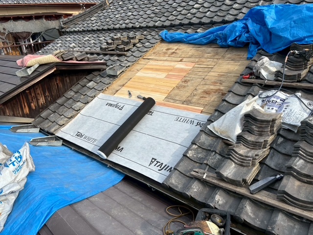 野地を貼り直しその上から改質アスファルトルーフィングを施工