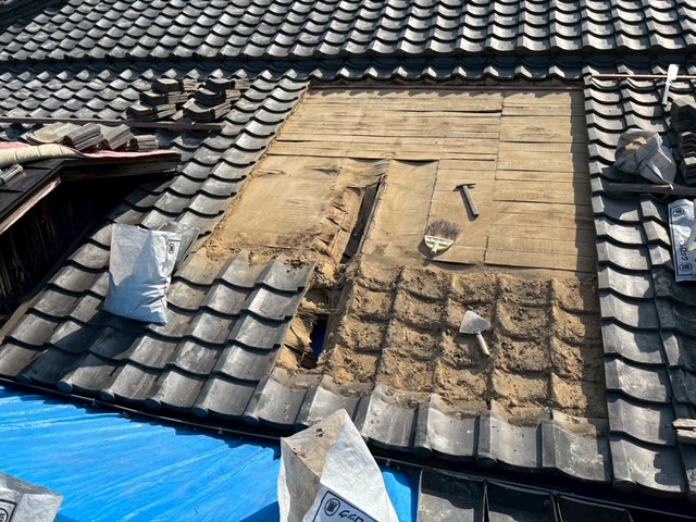 修理での葺き直しでは土を使用せず引っ掛け葺き(空葺き)を選択
