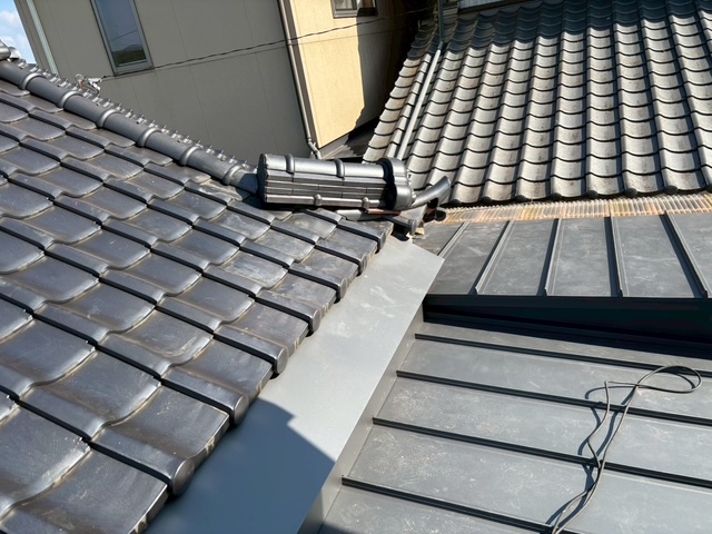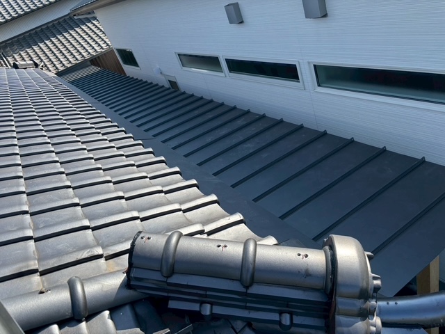 庇完成後は瓦の復旧