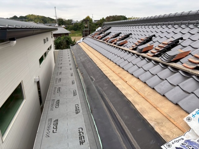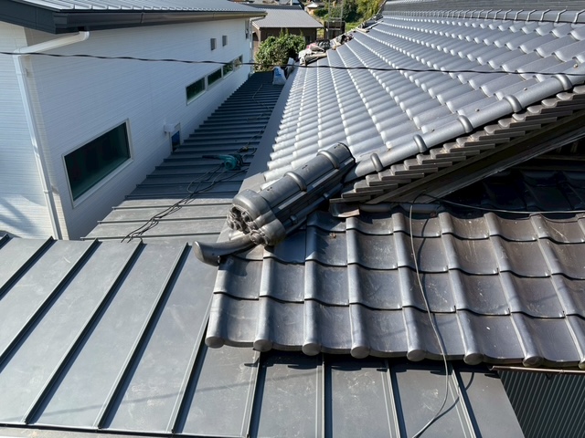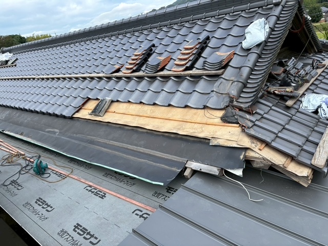 軒先瓦の葺き戻し&隅棟2本の積み直しが無事に終了です