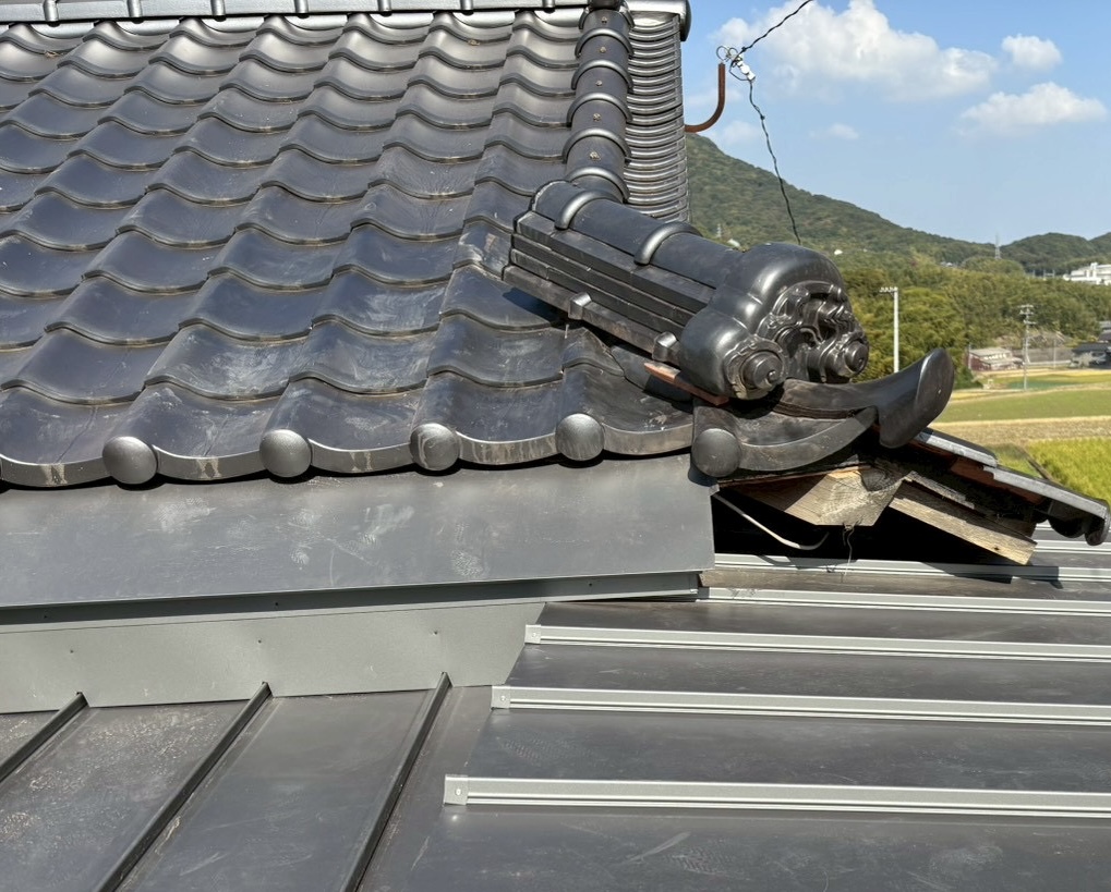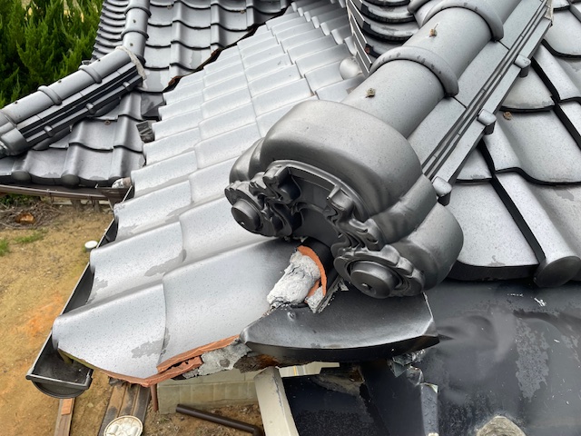2024年12月に解体屋さんが割ってしまっという隅巴(すみともえ)瓦です