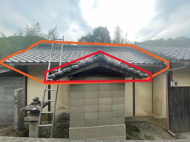 オレンジ色部分が葺き替え工事範囲で赤色部分はそのまま残します