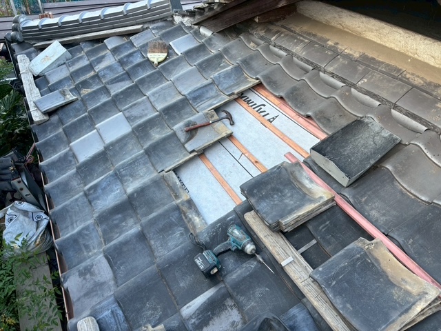 ヒビなどがあった瓦は要所で交換