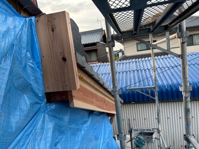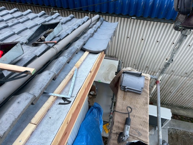 1列だけ屋根を延ばし袖瓦を施工することにしました