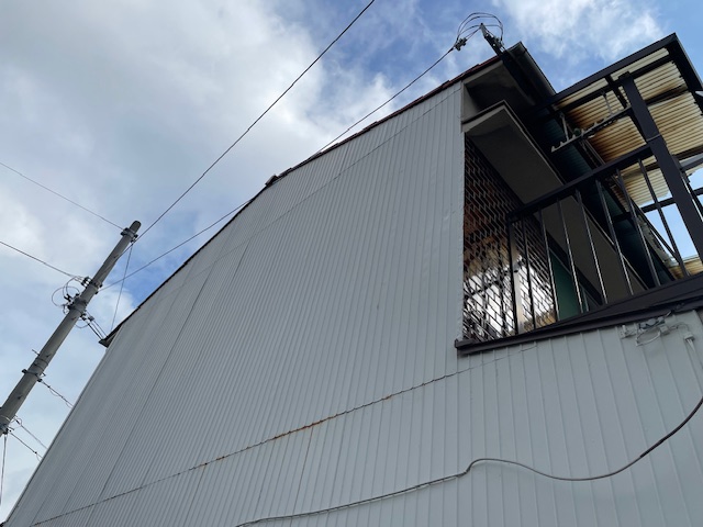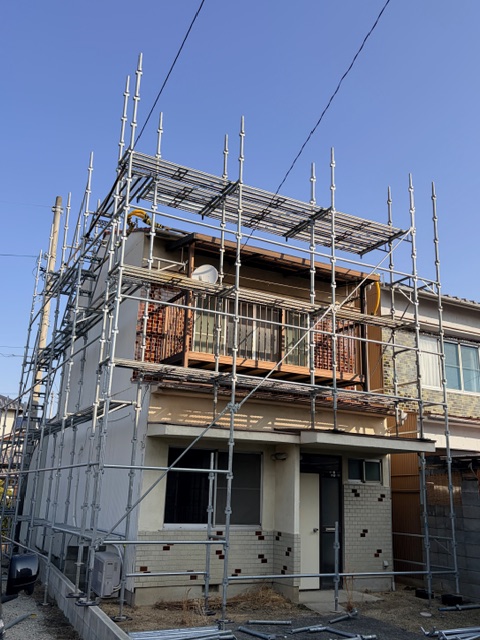 上記写真の左面の外壁も今回張り替えるということで屋根・壁に対応できる施工足場です