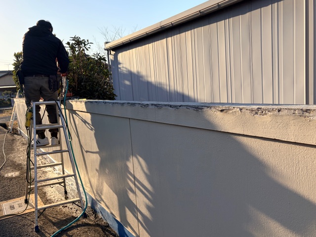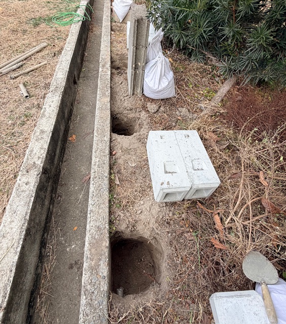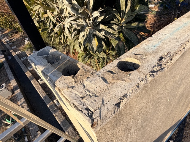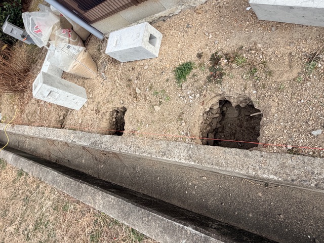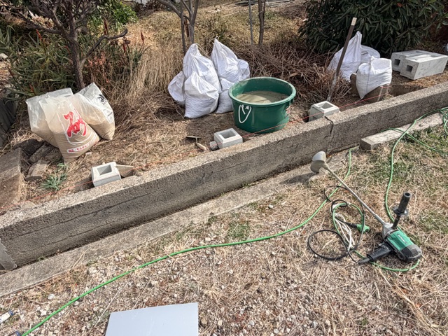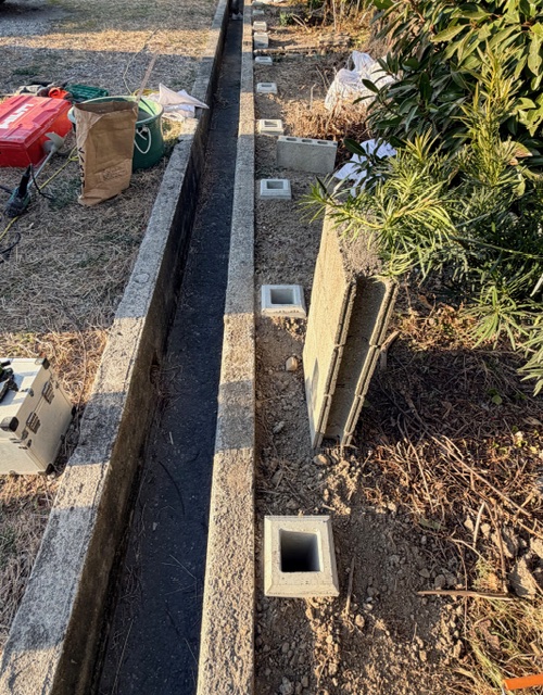そのまま既存塀の方も柱を建てる準備をスタート