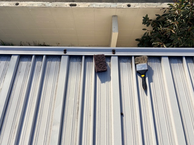 お施主様自らが塗ったという塗装を剝がす作業を開始