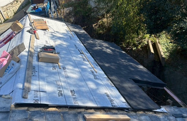 今回の屋根材であるシングル材を施工して…