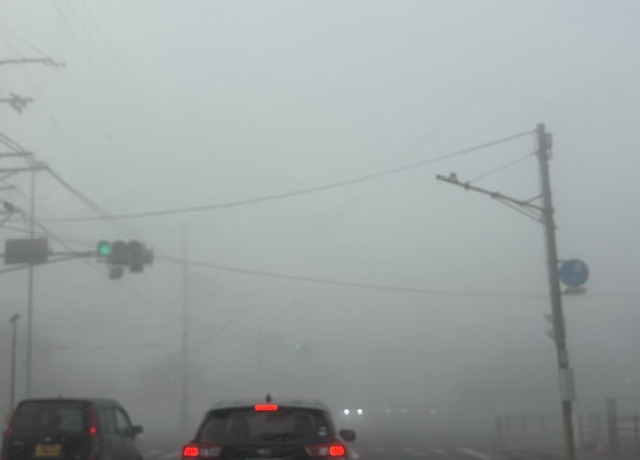 今朝は会社に近づくにつれ物凄い濃霧でした