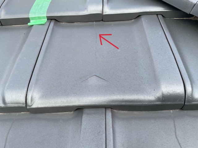 下屋根の瓦だけ異常な数のクラックが入っていました