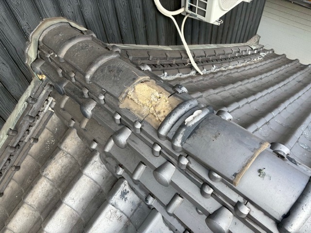 ピッタリ合うサイズの冠瓦を持ち込んで無事に完成です