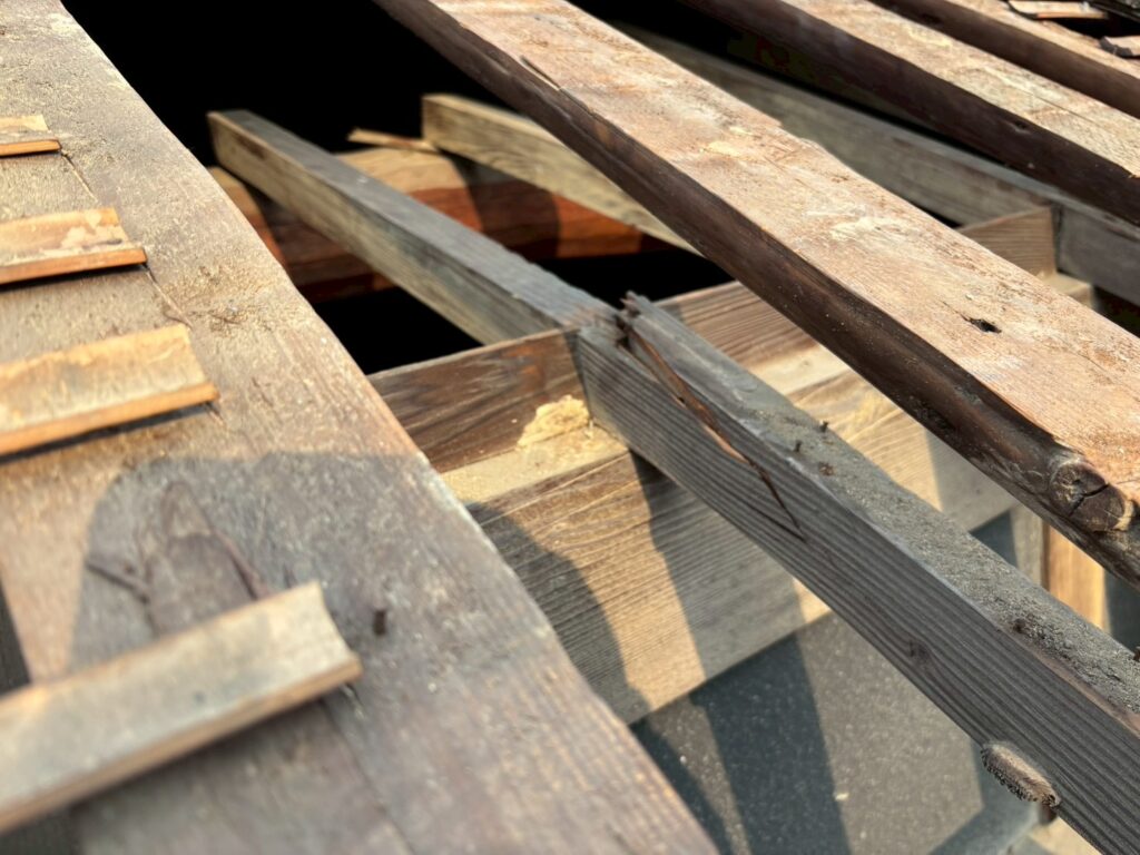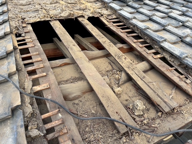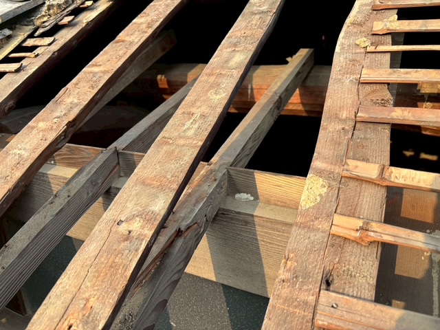 屋根下地である垂木も折れそうでした