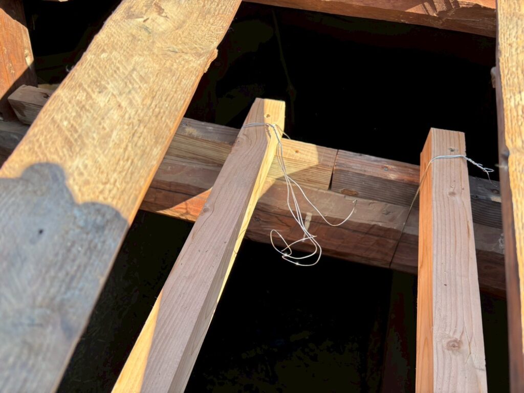 下から見えない箇所にも垂木(野垂木)がありそこには丸太を使用していました