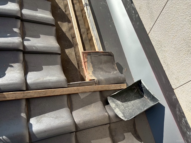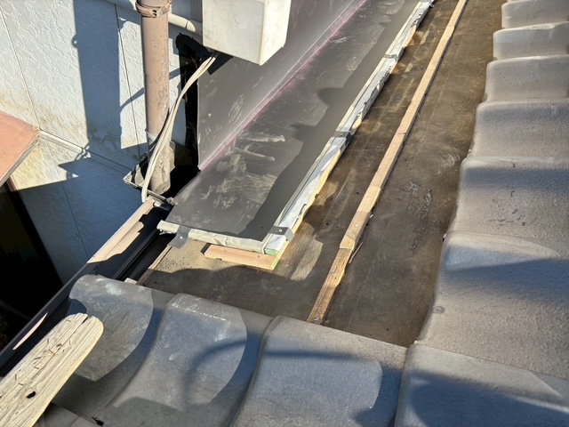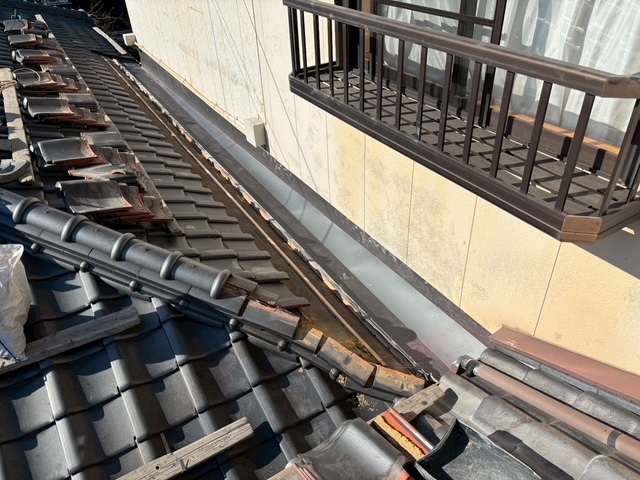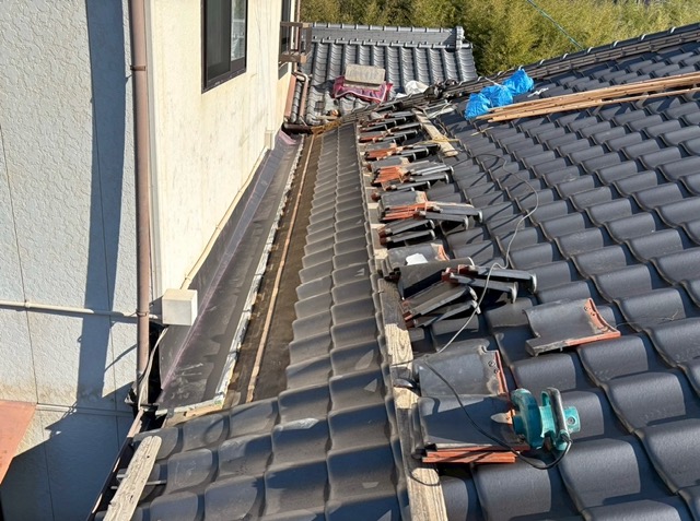 谷板が入ったあとは既存瓦を使用しての復旧作業