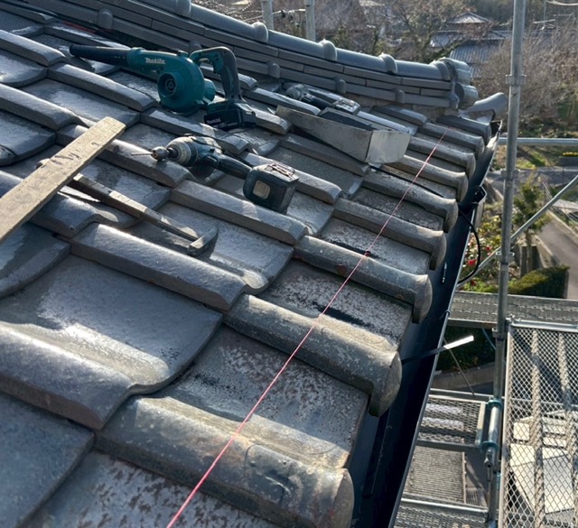 二階屋根の軒瓦のズレ留めも実施