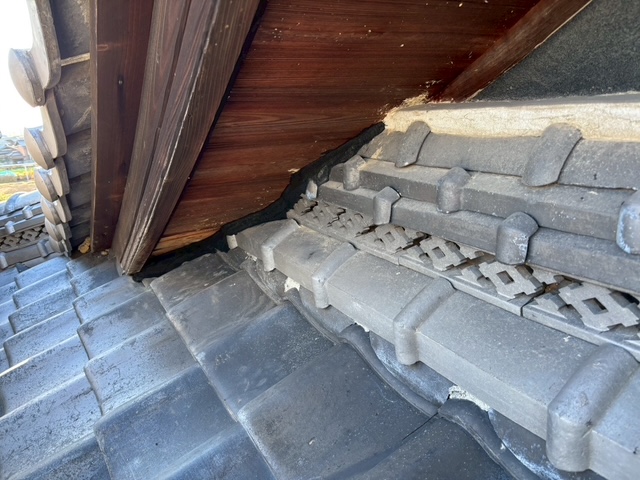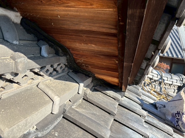 屋根全体で三ヵ所あった破風の隙間埋めが無事に終了です