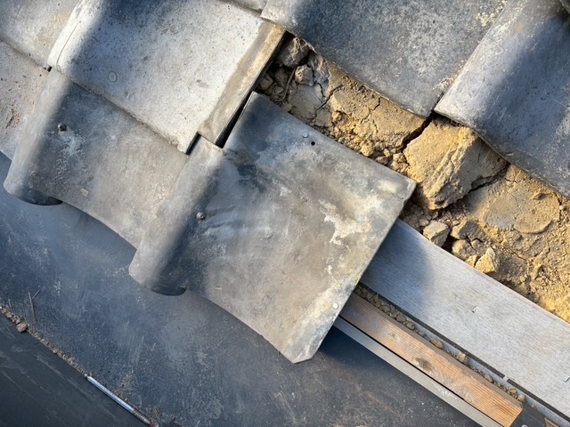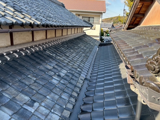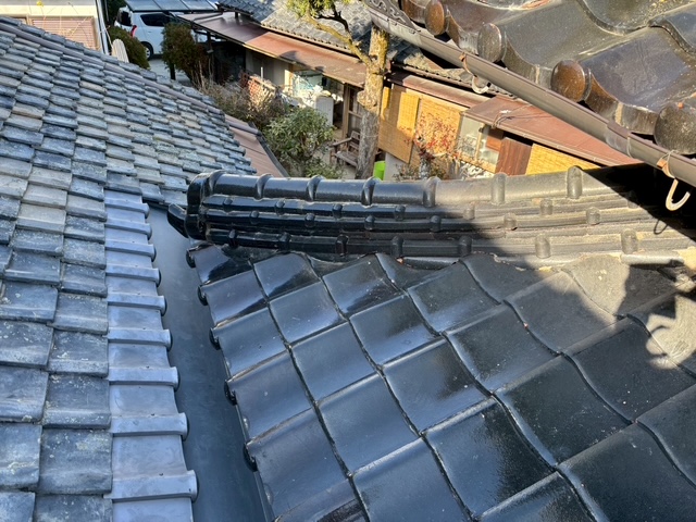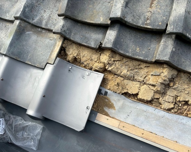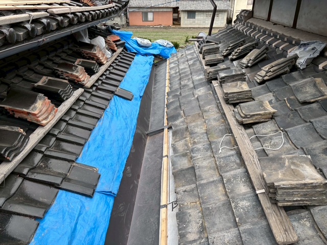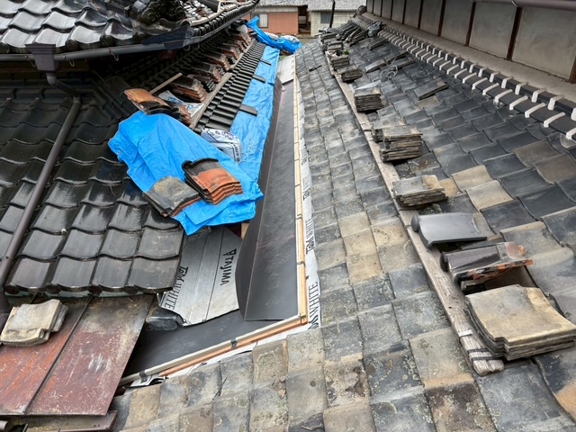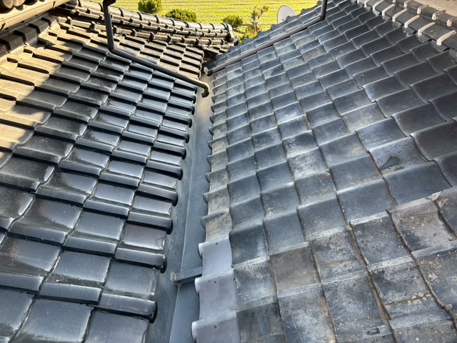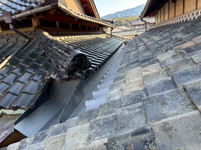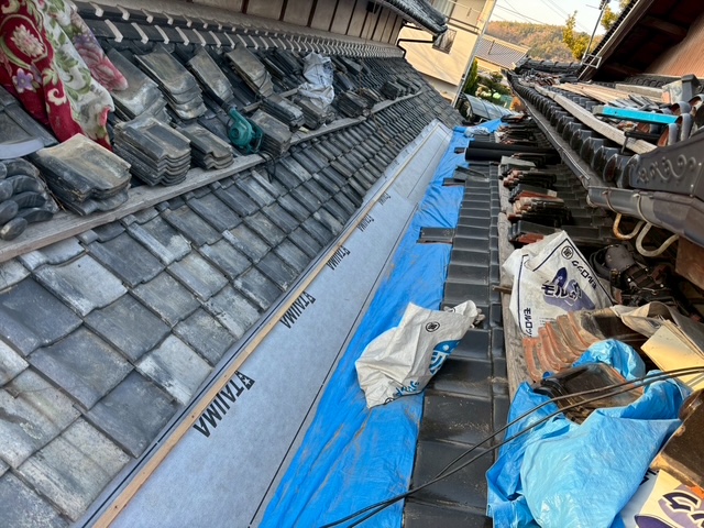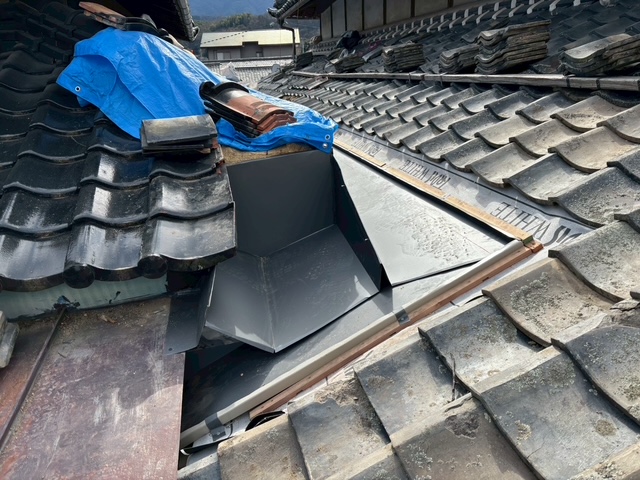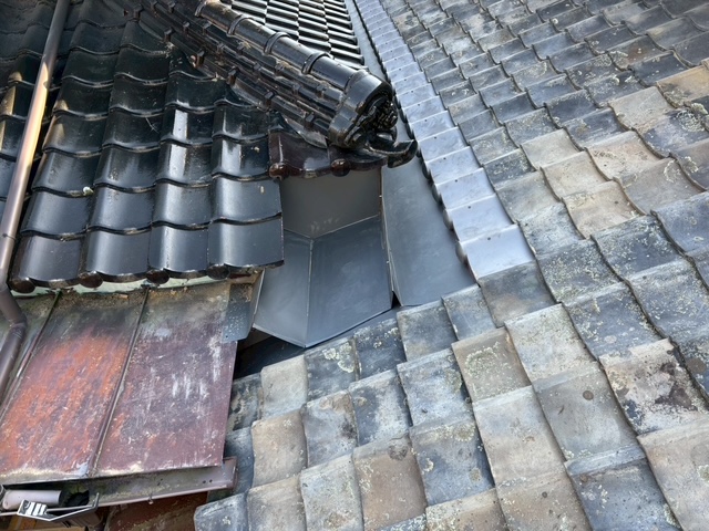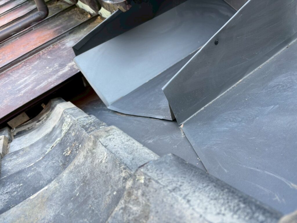 谷板の設置後は既存瓦の復旧