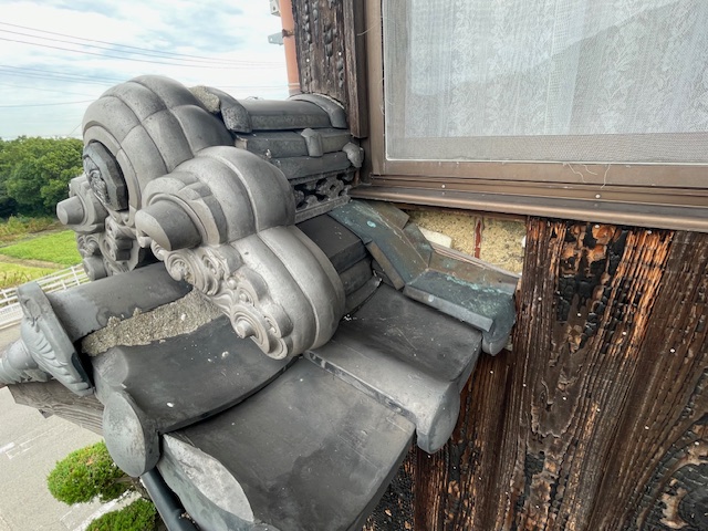 鬼瓦の下などにできた隙間の漆喰補修でした