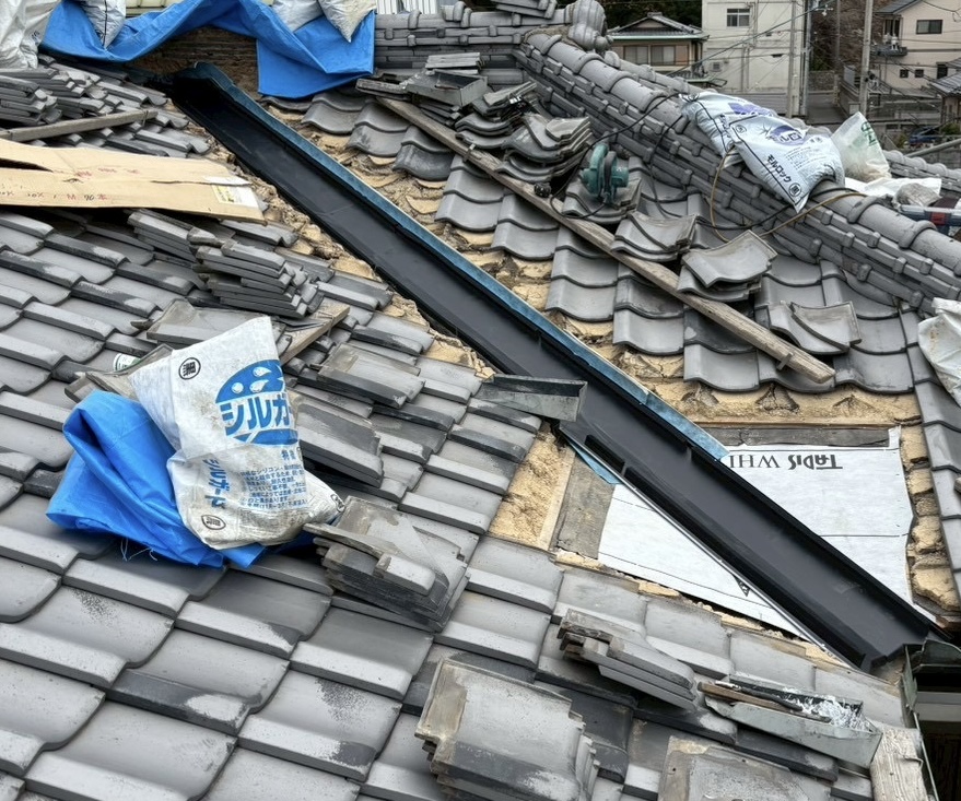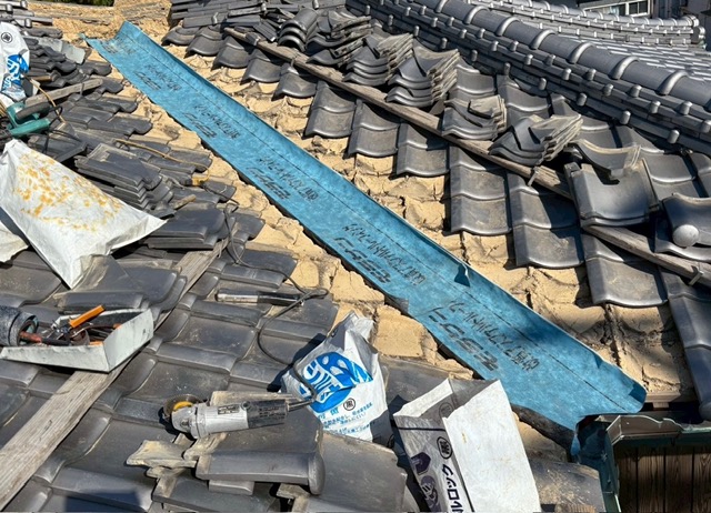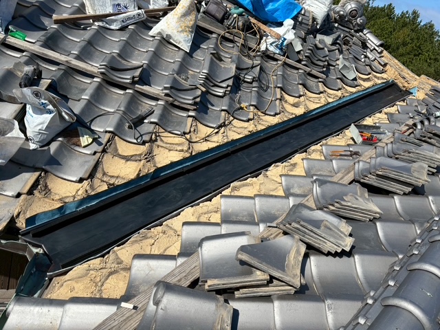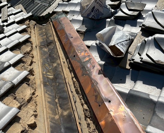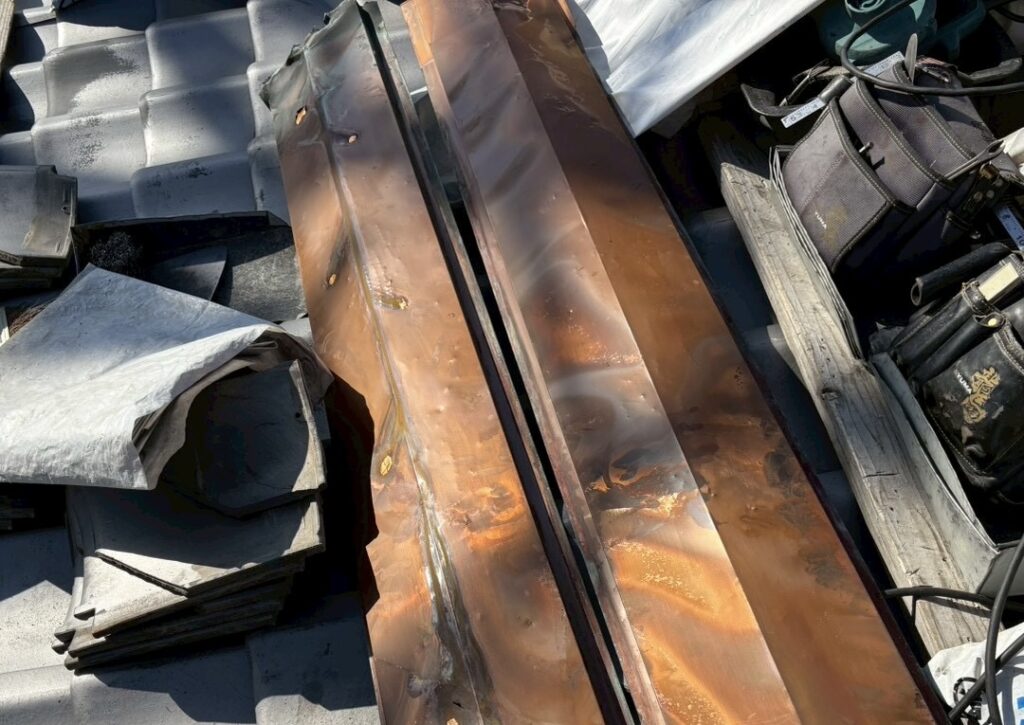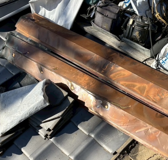 二階屋根にあった谷2本の入替工事が無事に完成です