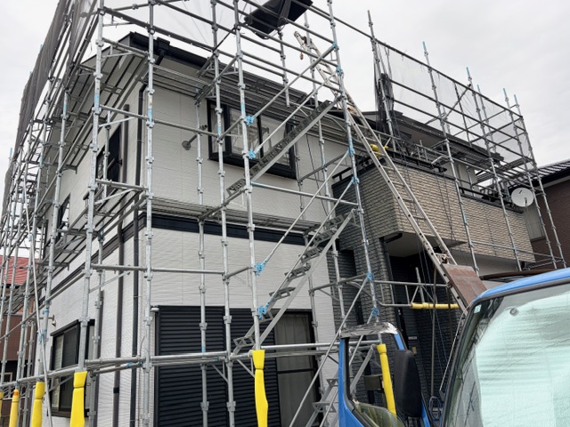 ますは外部足場より着工しました