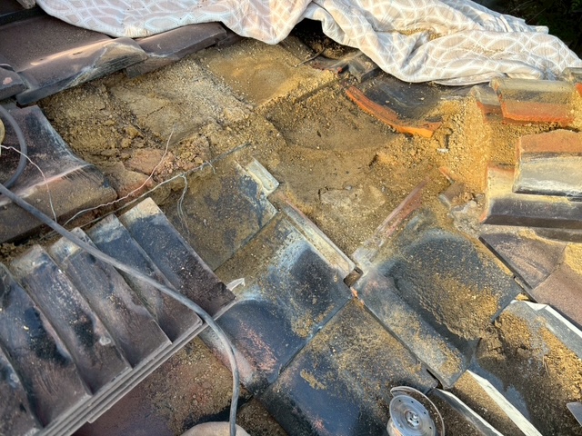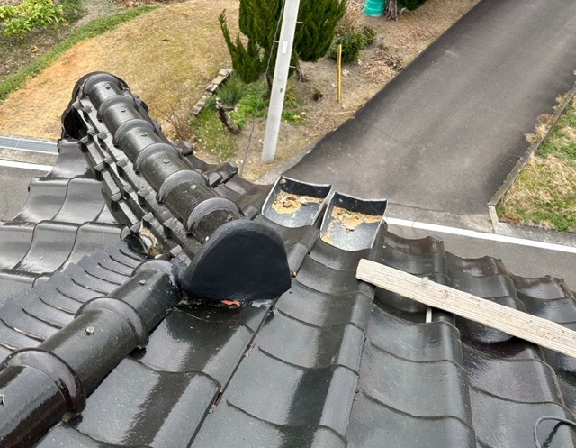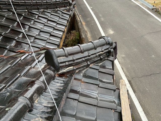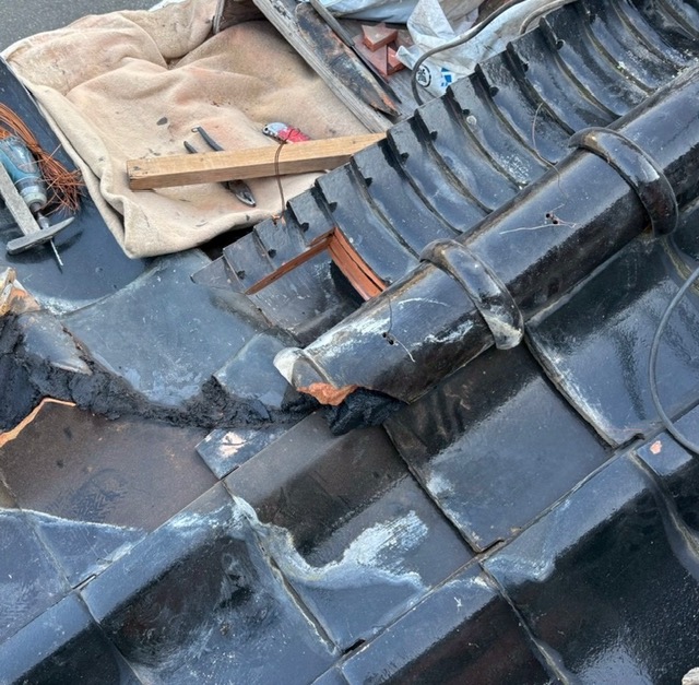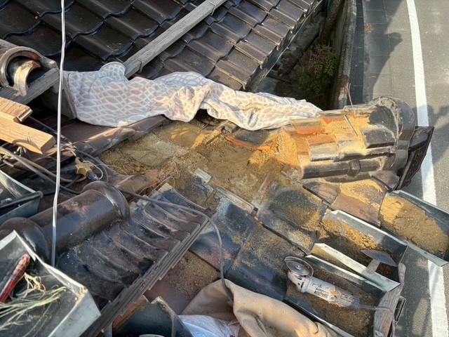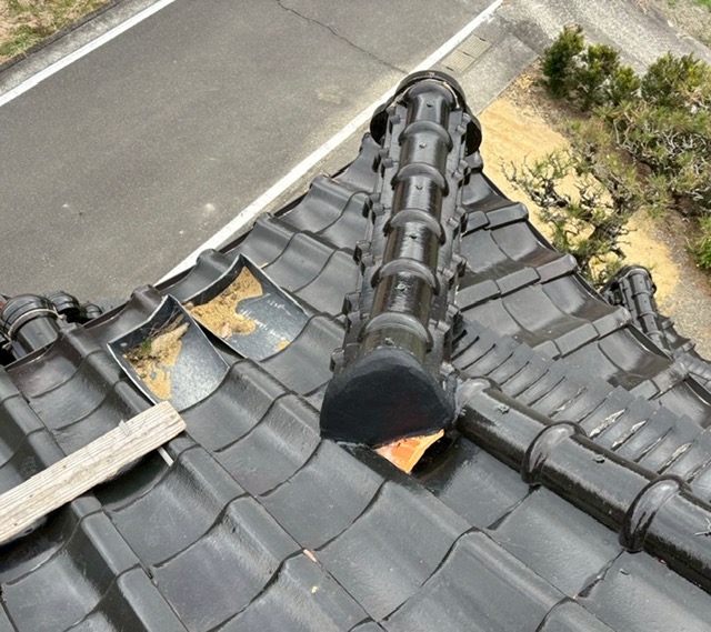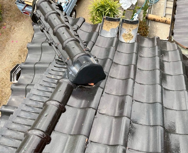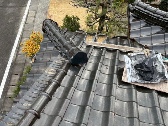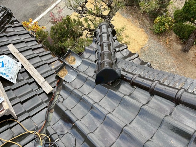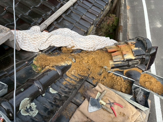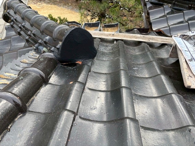 そちらは簡易的に隅棟の下(通称:トンネル)及び隅棟尻の補修をしてきました