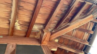 こちらは当社の地元・三豊市三野町内の雨漏り修繕依頼現場です 地上から見上げると… 野地板に雨染みが確認できます 全てが隅木(すみぎ)の...